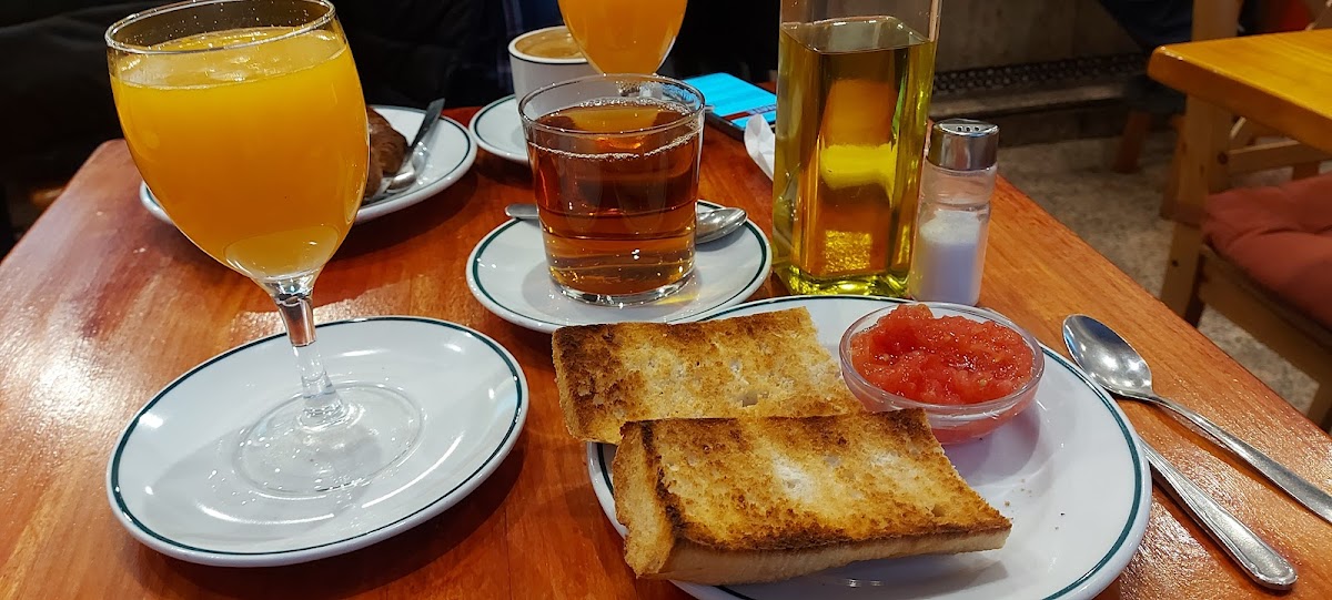 The vibe here is straightforward and unpretentious, the kind of place where locals stop by for a proper breakfast—often grabbing a café con leche paired with a crisp croissant or the classic tomato and olive oil toast. It’s not about trendy twists but the comfort of well-made, traditional fare served with efficiency, even during the busiest hours.